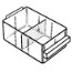 Serie 150 industri, laget av gjennomsiktig polypropylen. Skuffene kan deles inn i flere rom med skillevegger. Med håndtak. Designet for Raaco oppbevaringsskap serie 150 industrial.