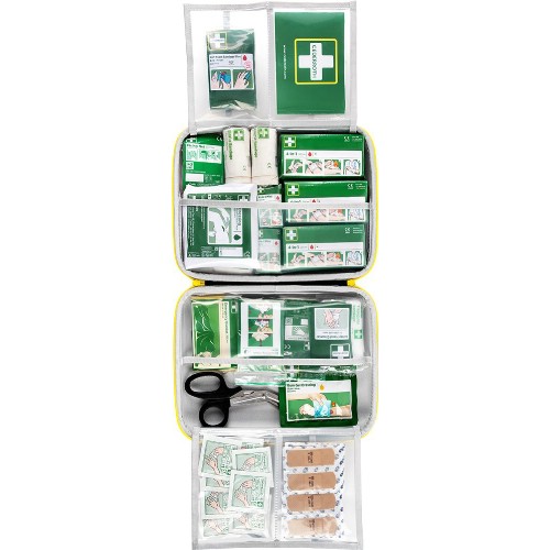 Robust og slitesterk førstehjelpsveske som er lett å bære. Produktene er pakket i gjennomsiktige plastlommer for god oversikt. Vesken beskytter innholdet mot støv og fukt. Signalfargene grønt og gult gjør vesken godt synlig på avstand. Egnet for skader som blødninger, små og store sår, pust, brannskader, sirkulasjonssvikt og forstuinger. Vekt ca 1 kg.