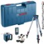 Roterende laser GRL 400 H, mottaker LR 1, batteri (NiMH), batteriholder, 2 stk 1,5 V batterier (D), 1 stk 9 V batteri (6LR61), lader med adapter, målestav GR 2400, stativ BT 152 og håndverkerkoffert.