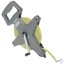 Målebånd i stål belagt med en omsluttende gul polyamidkappe. Smussavvisende overflate som er enkel å tørke av. Plastramme med "spadehåndtak" og uttrekkbar sveiv. Utstyrt med utbrettbar endekrok. Hele lengden er gradert i millimeter.