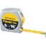 Med gul, lakkert beskyttelsestape dekket med Mylar Polyester-plast for å beskytte mot slitasje. I forkrommet plastkapsel med flat underside for innvendig måling. Selvopprullende bånd med låseanordning. Bevegelig endekrok. Belteklips. Målebånd 10 m har en fjærbelastet gummidemping når båndet rulles opp.