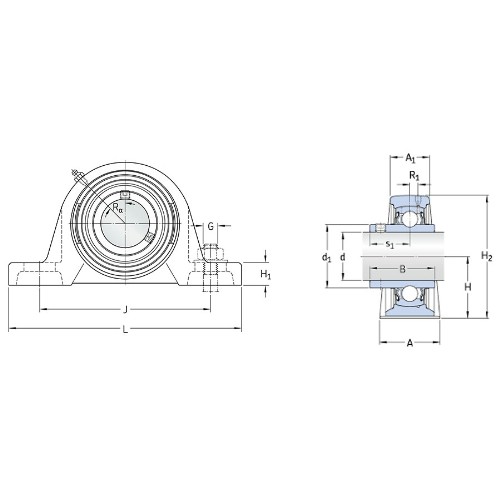 Komplett lagerenhet med innsatslager. Lagerhus laget av støpejern utstyrt med smørenippel. Innsatslager med friksjonstetning av NBR og ekstra utkasterskive på begge sider. Kan utstyres med endestykke.